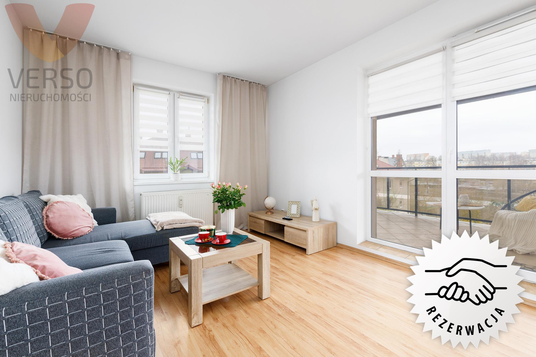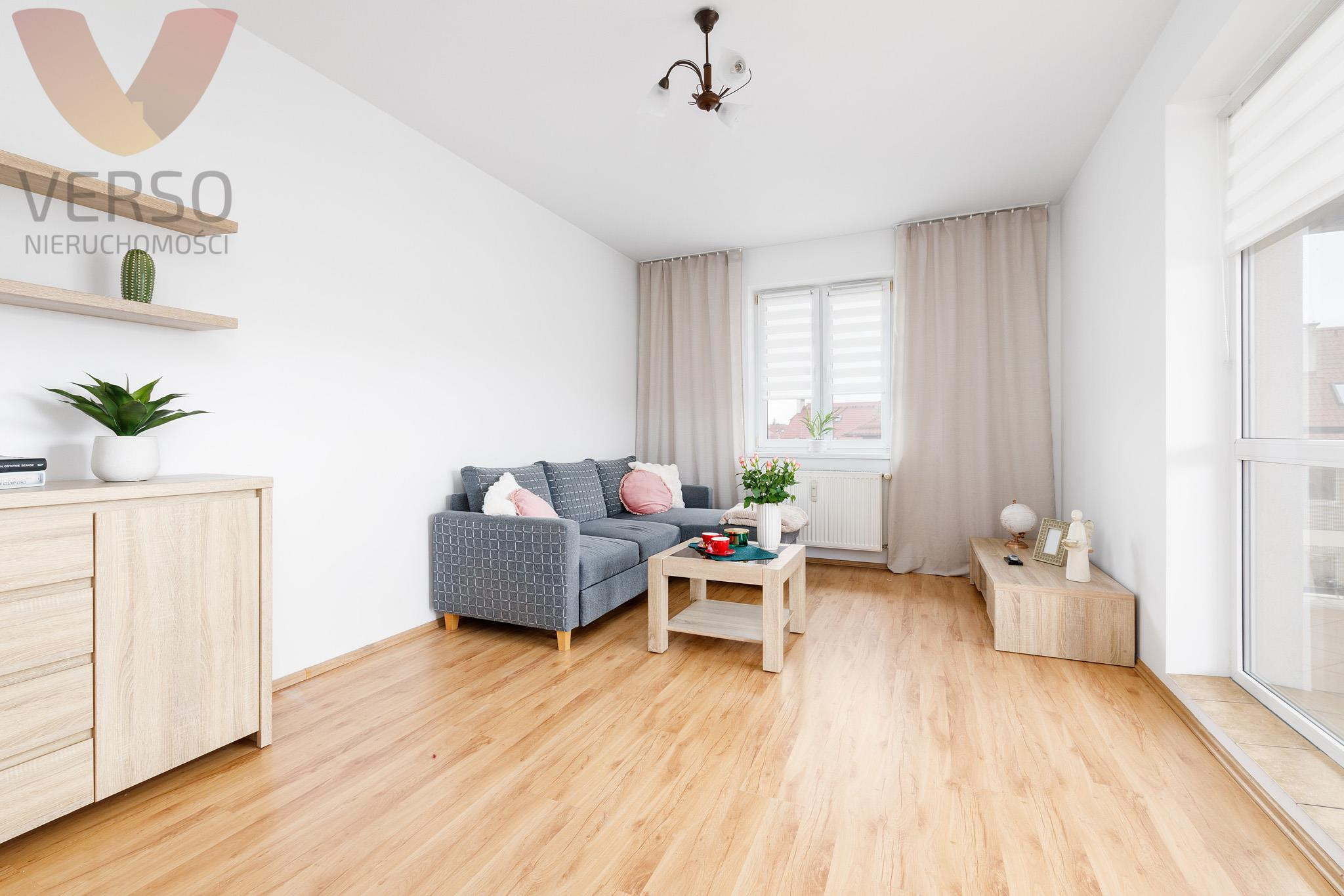 Biuro Nieruchomości Verso oferuję na sprzedaż rozkładowe, bardzo jasne 2 pokojowe mieszkanie z oddzielną kuchnią i dużym balkonem.